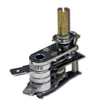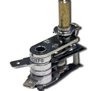 Jika elemen pemanas adalah jantungnya, maka termostat adalah otaknya. Komponen ini berfungsi sebagai pengatur suhu otomatis yang menjaga panas setrika tetap stabil sesuai dengan jenis kain yang dipilih. Termostat bekerja menggunakan prinsip lempengan bimetal (dua logam berbeda yang disatukan) yang akan melengkung saat mencapai suhu tertentu. Lengkungan ini akan mendorong kontak pemutus arus, sehingga aliran listrik ke elemen pemanas berhenti. Saat suhu mulai turun, lempengan akan lurus kembali, menyambungkan kontak, dan elemen pemanas kembali bekerja. Proses inilah yang menghasilkan bunyi "klik" khas pada setrika.